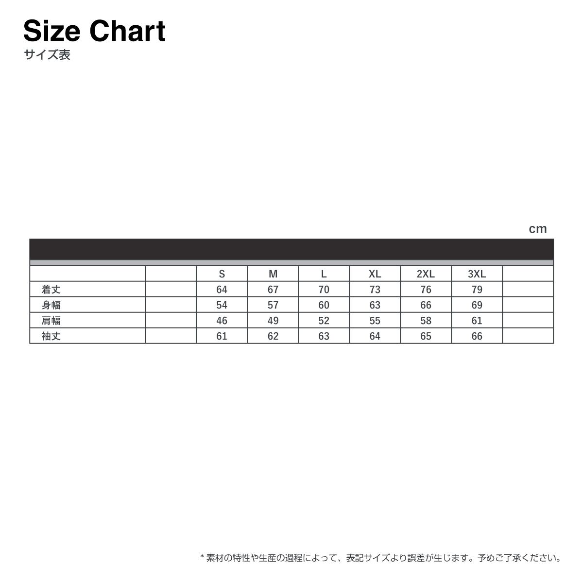 *身幅がタイトなのでいつもよりワンサイズ大きめをオススメします